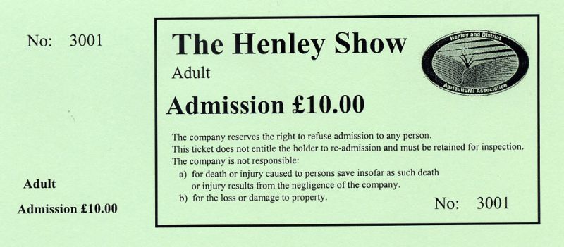 Colour printed tickets are also available by quotation on receipt of a specification.
